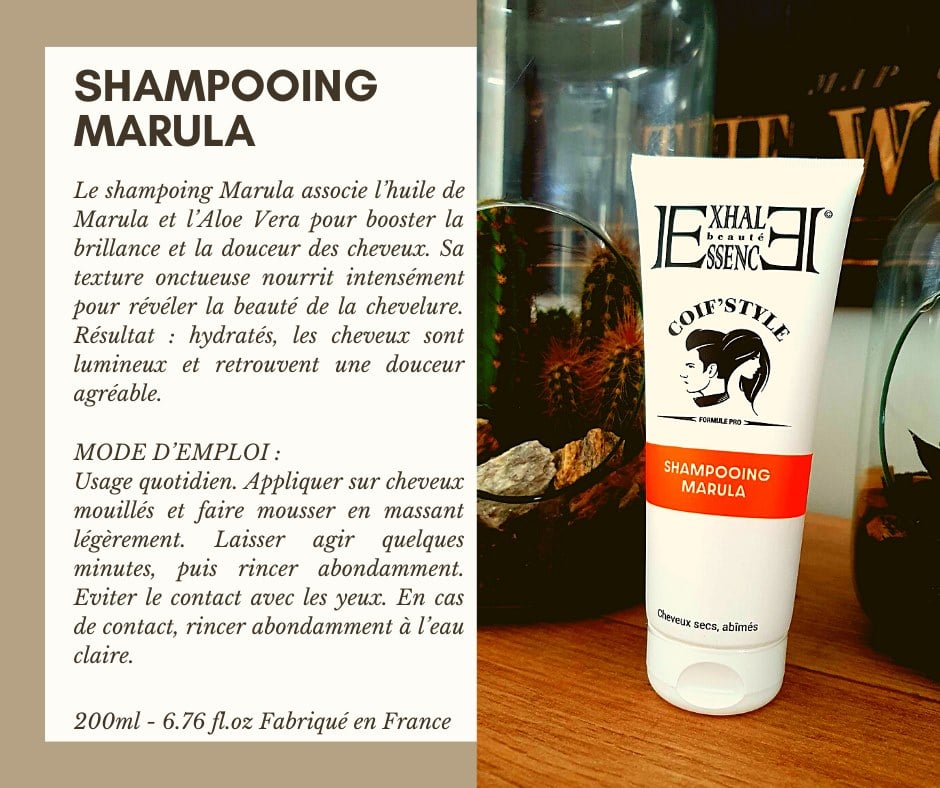 Le Shampoing Marula est conçu pour une brillance et une douceur maximales.