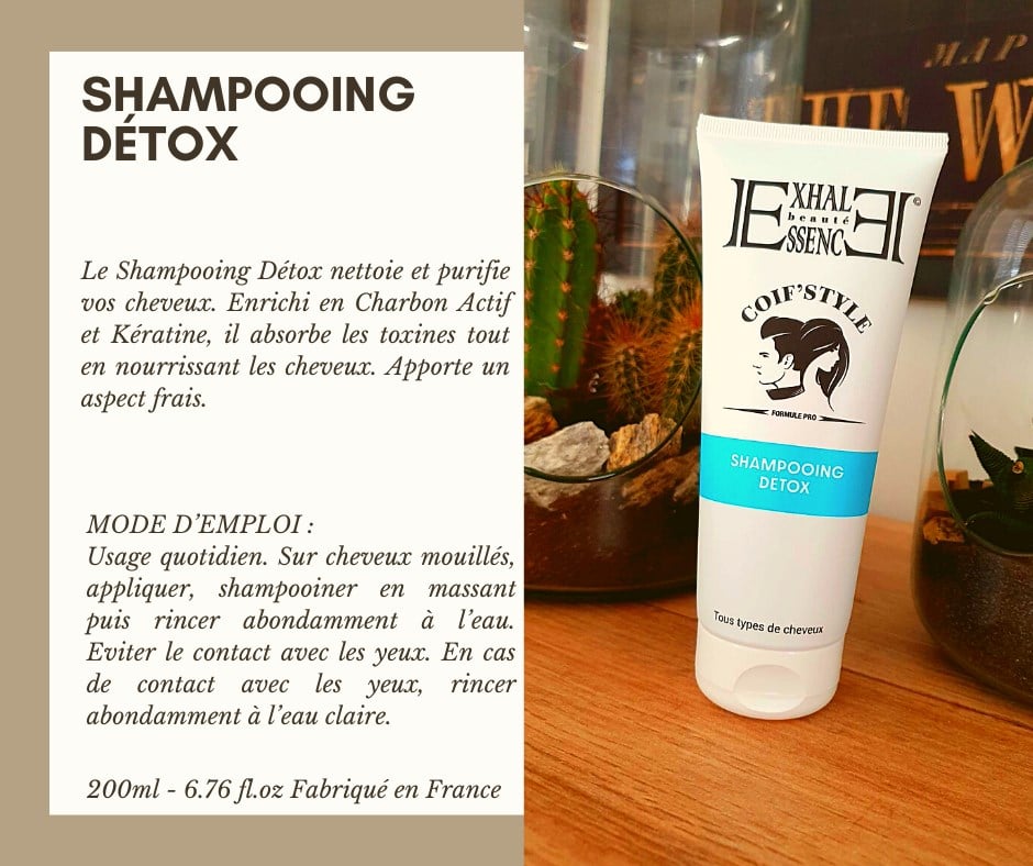 Découvrez les bienfaits de notre Shampoing Détox Purifiant, conçu pour nettoyer en profondeur et assainir vos cheveux.